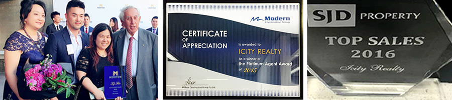 澳洲最大住宅开发商Meriton Top Five Agent/Modern年度铂金地产经纪/国际房地产开发商SJD Property Top Sales/澳洲综合性房地产开发商Golden Age Top Performance Agent